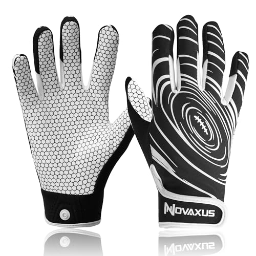 NOVAXUS Youth Football Gloves for Kids- Silicone Palm, Sticky Receiver Gloves for Boys/Girls,Black XS