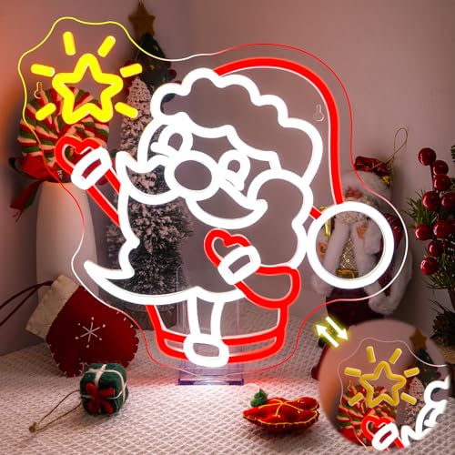 LUCUNSTAR Christmas Neon Sign Dimmable LED Santa Claus raises stars Light up Sign for Bedroom USB Powered Home Party Living Room Cafe Bar Outdoor Wall Decor