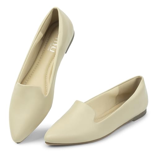 MUSSHOE Flat Shoes Women Comfortable Slip on Women's Flats,Beige PU 6