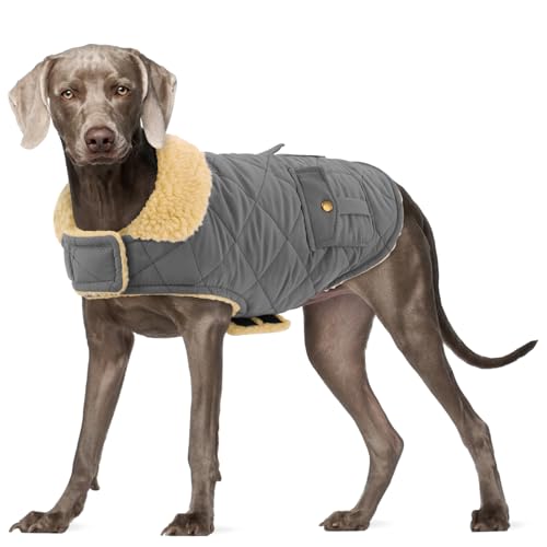 Large Dog Coat, Warm Jacket for Extra-Large Dogs, Dog Winter Coat, Pet Windproof Cold Weather Coats Snow Jacket Pet Clothes, Golden Retriever, Labrador Retriever, Husky, Grey XL