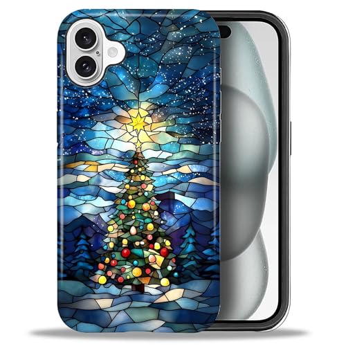Goodsprout for iPhone 16 Plus Case,Hybrid 2-Layer Hard Shell + Silicone Protective Case -Resistant Shockproof- Christmas Tree Starry Sky Glass Collage