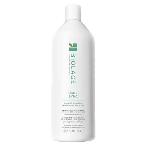 Biolage Scalp Sync Calming Shampoo - Gently Cleanses Dry & Sensitive Scalps, Hydrates & Soothes, Fermented Tea Blend & Glycolic Acid, Vegan & Paraben-Free, 33.8 Fl Oz, Packaging may vary