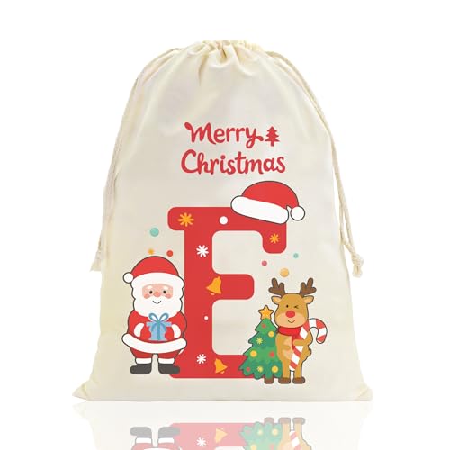 Fohufo 2025 Large Christmas Gift Bags - Xmas Decorations Indoor Gift Bags, 19.6 x 25.5 Inch Reusable Christmas Gifts Bag, Initial Santa Sacks Xmas Bag Party Supplies, Large E
