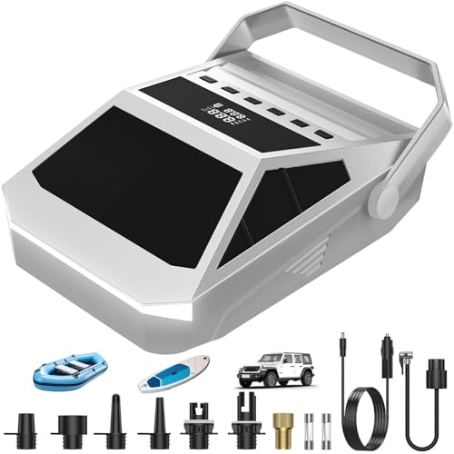 50PSI Paddle Board Pump Electric Portable, High Pressure Sup Pump - Dual Stage Inflation, Auto Shut Off and Deflate for Stand Up Paddle Board/Car/Kayak/Bicycle (Silver-DC12V)