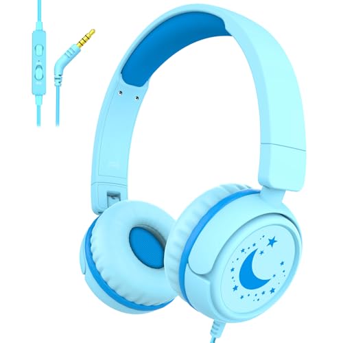 IYGR K6 Kids Headphones, 85/94dB Volume Limit Wired Headphones for Kids,3.5mm Jack Foldable Stereo Sound Toddler Headset with Mic, On-Ear Headphone for Smartphones/iPad/Tablet/Plane/Travel (Cyan)