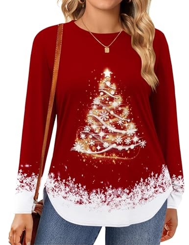 IN'VOLAND 2025 Plus Size Womens Long Sleeve Tops Round Neck Shirts Casual Side Split Basic Loose Tunic Tops
