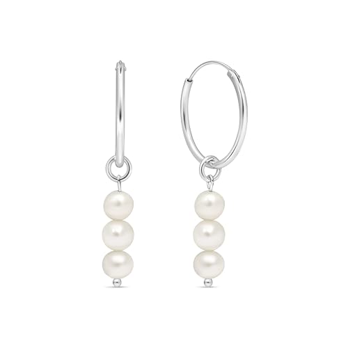 925 Sterling Silver Pearl Earrings - Pearl Hoop Earrings - Silver Drop Earrings for Women - Everyday Earrings for Women - Elegant Statement Earrings for Women