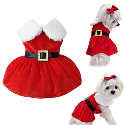 Dog Christmas Costumes Mrs Santa Claus Puppy Dress Xmas Outfits Velvet Red Cat Skirt Thermal Winter Warm Dog Clothes Coat Holiday Girl Puppy Christmas Dress Apperal for Small Medium Dogs