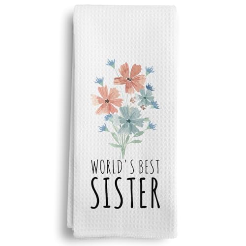 Qeheb Sister Kitchen Towels, World's Best Sister Floral Decorative Dish Tea Towels, Best Sister's Birthday from Brother Sister Hand Towels for Bathroom 16X24In
