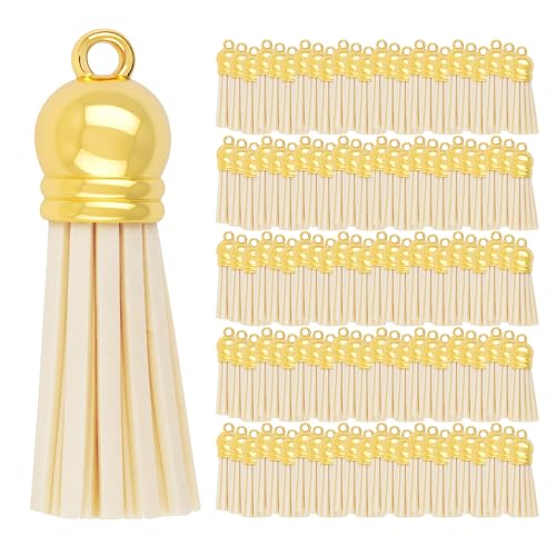 Mandala Crafts 100 Pcs Gold Cap Cream Faux Suede Tassels Bulk Keychain Making Supplies - Small Leather Tassels for Charms, Jewelry Making, and DIY Crafts