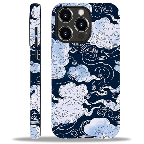 WANKBLC for iPhone 12 Pro Max Glossy Case for Girl Boy Full Body Design Soft Silicone Drop Shock Scratch Protection Fashion Pattern Ink Drawing Dark Blue White Clouds
