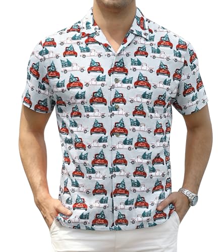 Damipow Hawaiian Shirt for Men Short Sleeve Beach Vacation Shirt Floral Summer Casual Button Down Shirts,Xmas Light Grey,2XL