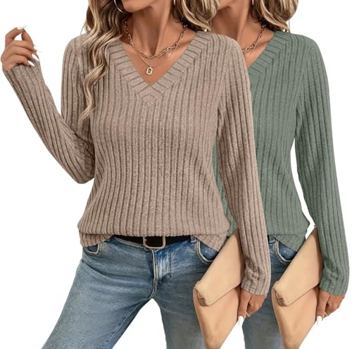 INNOVATOP Womens Long Sleeve V Neck Shirts 2025 Fall Tops Casual Outfits Blouses Pullover Sweaters Tunic Fashion Clothes
