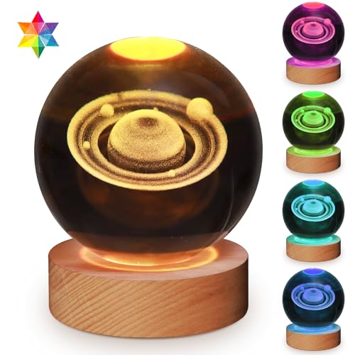 YAZJIWAN 3D Crystal Ball Saturn Lamp,3.15inch Multi-Color Changing Bedroom Decor Night Light,Christmas Birthday Gifts for Boys, Girls