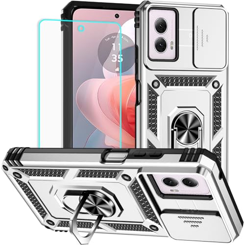 HNHYGETE for Moto G Power 5G 2024 Case with Screen Protector: [Military Grade 20ft. Drop Tested] Ring Shockproof Protective Phone Case for - Motorola G Power 5G 2024 (Silver)