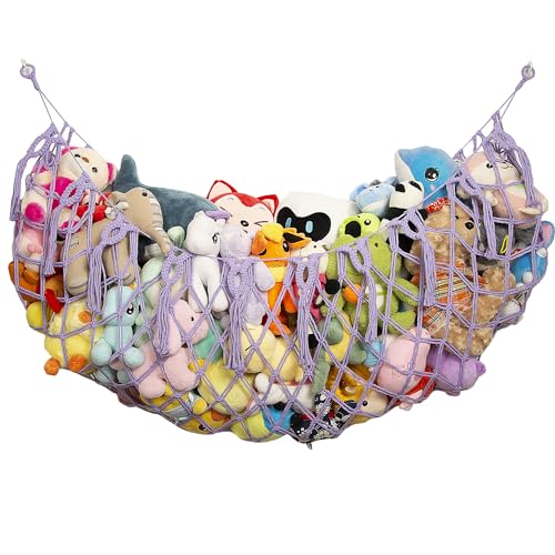 Stuffed Animal Net or Hammock -Wall Mounted-Handmade Macrame Toy Hammock Organizer Stuffed Animal Display Plush Toys Holder Boho Decor for Nursery Playroom Purple