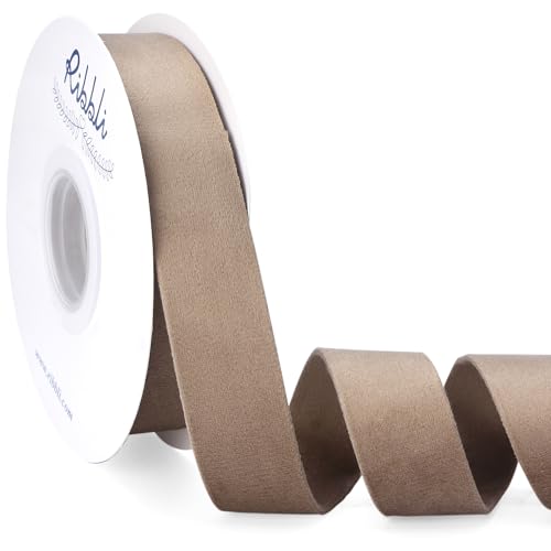 Ribbli Camel Velvet Ribbon Double Faced 1 Inch 10-Yard Spool Camel Ribbon Use for Christmas Tree Ornaments Gift Wrapping Wreath Decoration Wedding Boutonnieres