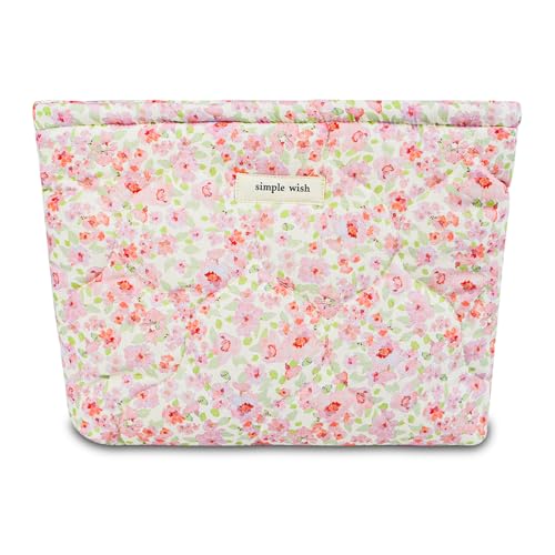 AMZMA Quilted Cotton Makeup Bag, Puffy Coquette Cosmetic Pouch for Women Teens Girls, Large Travel Toiletry Organizer, Cute Aesthetic Zippered Clutch