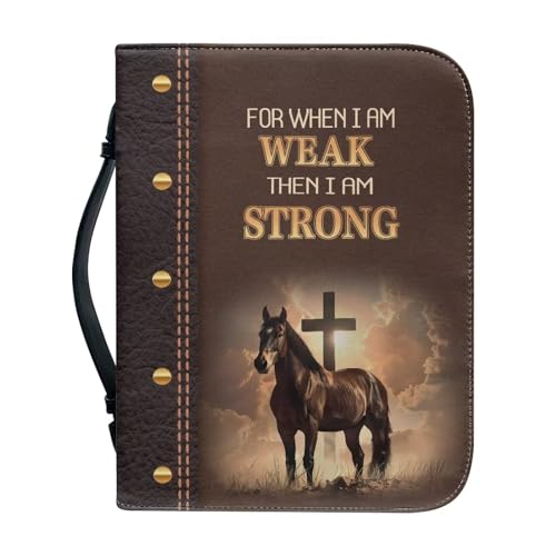 Talayituse Cross Horse Print Bible Covers for Women Men for When I am Weak Then I am Strong PU Leather Christian Bible Case Bible Bag Book Carrying Case Christian Bible Accessories with Handle, M
