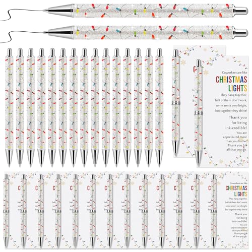 Sayglossy 30 Set Glitter Christmas Pens Gifts Bulk Christmas Employee Appreciation Gifts Ballpoint Pens with Thank You Cards for Office Coworker Staff Team Teacher Nurse (Lights)