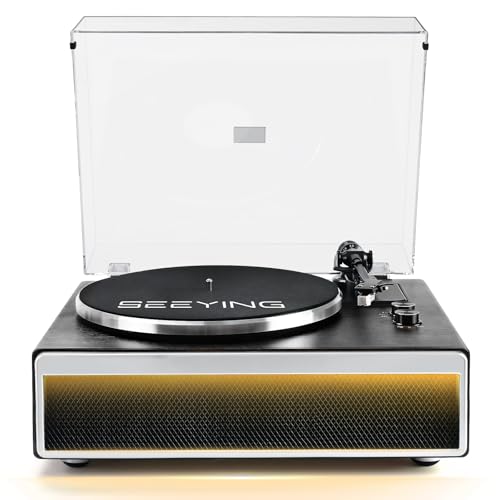SeeYing Vinyl Record Player with Built in HiFi Speakers, Bluetooth Belt Drive Turntable for Vinyl Records with Magnetic Cartridge, Auto Stop and Warm Light Design