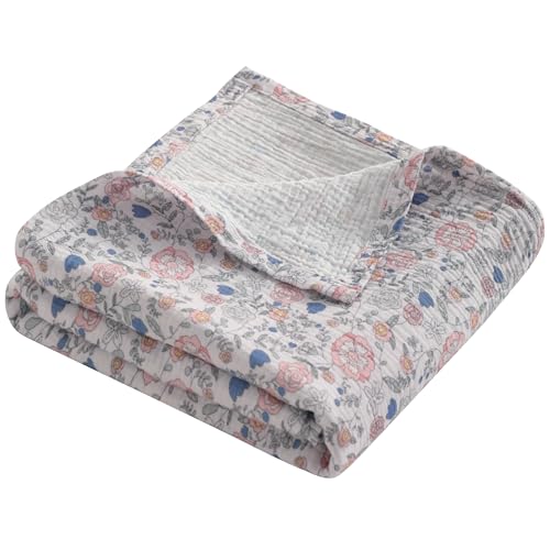 NTBAY 2 Layer Muslin Cotton Baby Swaddle Blanket, 42x60 Soft and Breathable Receiving for Newborns and Infants, Perfect for Crib, Stroller, Travel, Lightweight Nursery Blanket, Vintage Floral