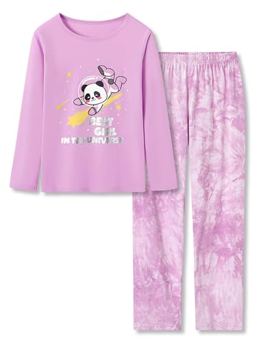 Tebbis Tie Dye Astronaut Panda Pajamas for Girls 100% Cotton Purple Soft Long Sleeves & Pants PJ Jammies Set Size 5T