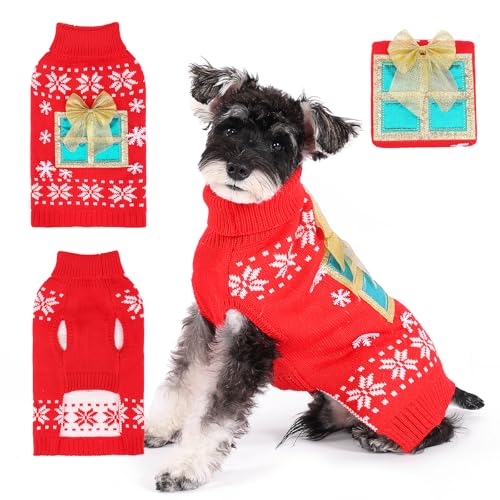 KOOLTAIL Christmas Dog Sweater, Turtleneck Cold Weather Cable Knitwear for Small Medium Large Dogs, Holiday Best Gift, Snowflake Pattern Thick Warm Winter Pet Clothes for Bulldog, Dachshund,Yorkie, M