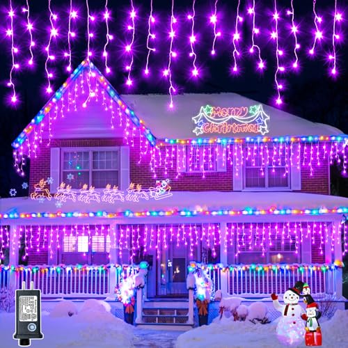 Einiiya 640 LED Icicle Lights for Outside 66ft Purple Christmas Lights Outdoor 8 Modes with 120 Drops Waterproof Christmas Icicle Light Plug in for Indoor House Party Holiday Decorations
