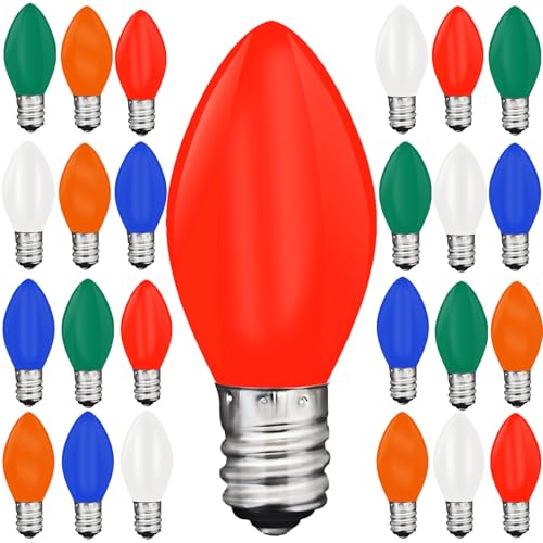 25 Pack C7 Led Multicolor Christmas Replacement Light Bulbs for Outdoor String Lights, E12 Candelabra Base Bulbs, 0.6W Energy-Efficient LED Bulbs, C7 Shatterproof Led Night Lights Candles Bulb