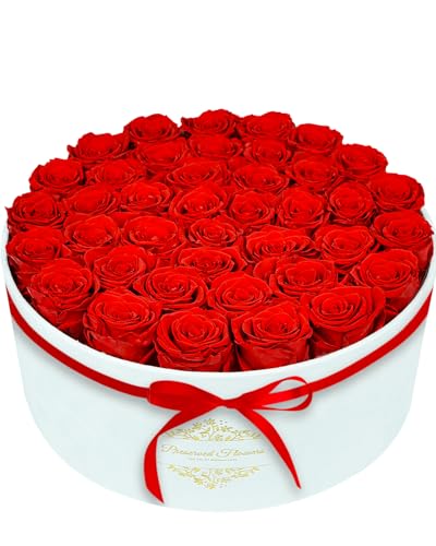 40 Forever Flowers in a Luxury Suede Box, Preserved Roses Birthday Gifts for Women, Romantic Anniversary Wedding Gifts for Women Her Girlfriend Wife, Red