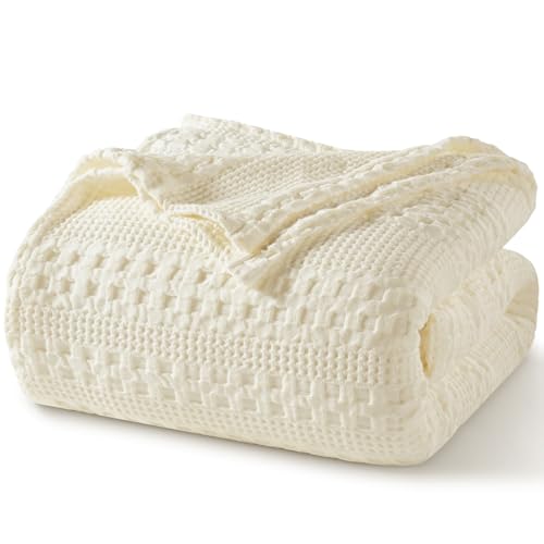 PHF 100% Cotton Waffle Weave Blanket King Size for Bed, Soft Lightweight & Breathable, All-Season Comfort, Luxury Aesthetic Christmas Blanket for Home Decor, 108"x90", Cannoli Cream