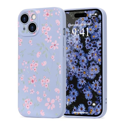 Wirvyuer Floral Elegant Design Phone Case for iPhone 14, Compatible with MagSafe Shockproof Protective Cover for Women Girls Slim Fashion Flower Case for iPhone 14, Purple