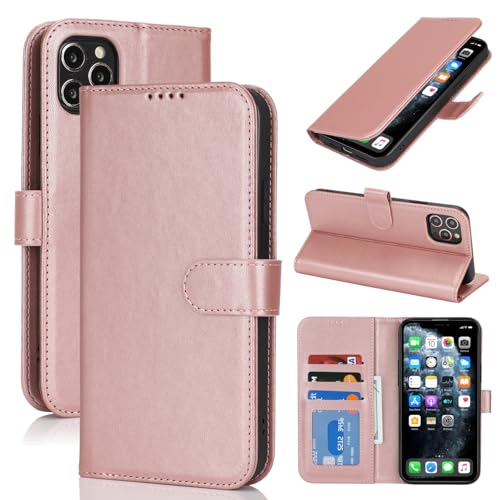 SunYoo for iPhone 11 Pro Max Case Wallet with Card Holder,for iPhone 11 Pro Max Wallet Case for Women Men,PU Leather Shockproof Magnetic Buckle Stand Flip Phone Case-Rose Gold