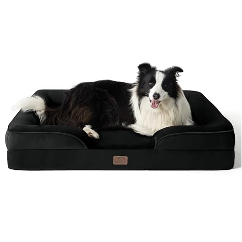 Bedsure Orthopedic Dog Bed for Large Dogs - Big Washable Dog Sofa Beds Large, Supportive Foam Pet Couch Bed with Removable Washable Cover, Waterproof Lining and Nonskid Bottom, Black