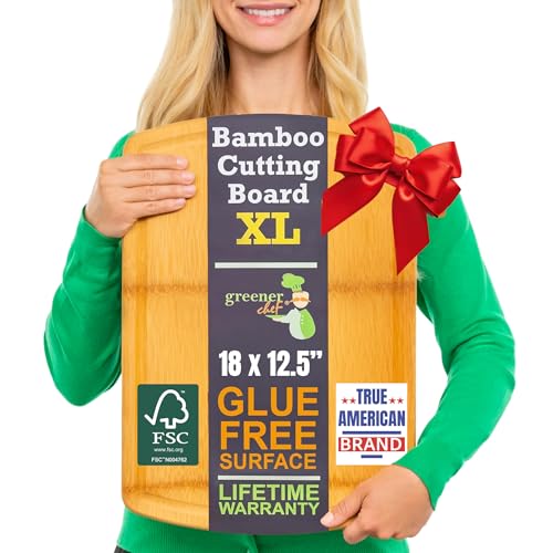 FSC-Certified Extra Large Bamboo Cutting Board Featuring 18 Inch Glue-Free Surface™ – XL, Non-Toxic Wooden Board for Family Kitchens, Butcher Block Style Food Prep with Lifetime Replacements