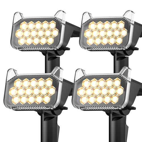 WdtPro Solar Spot Lights Outdoor Waterproof, Bright Solar Lights Outdoor with 16 Extra-Large LEDs, 3 Modes Landscape Spotlights, 2-in-1 Solar Powered Light for Yard Flag Garden, 4 Pack, Warm White