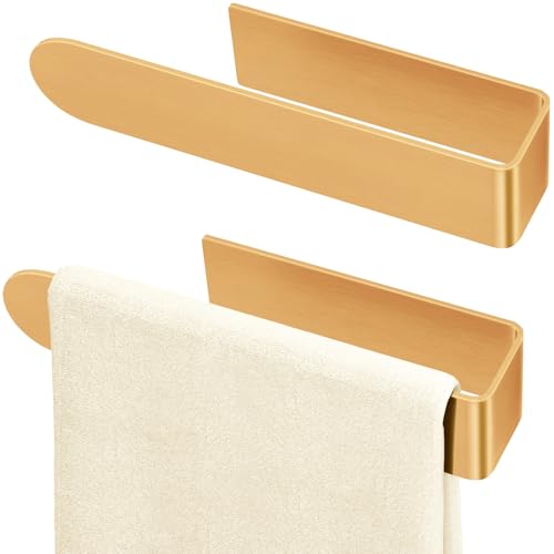 Self Adhesive Hand Towel Holder Rose Gold, 8 Inch Towel Holder for Bathroom Wall Mounted, Square Towel Bar Stick on Wall for Kitchen Cabinet RV (2 Pack)