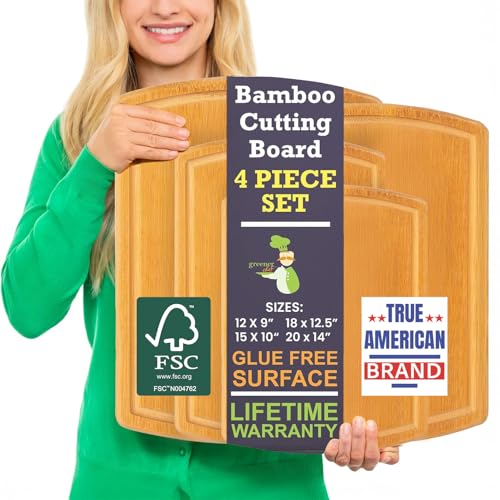Glue-Free Surface™ 2XL Extra Large Bamboo Cutting Board Set of 4 – Small, Medium, XL, and Oversized Sizes from Chopping Vegetables to Carving Meat & Turkey for Large Family Meal Prep and Gatherings
