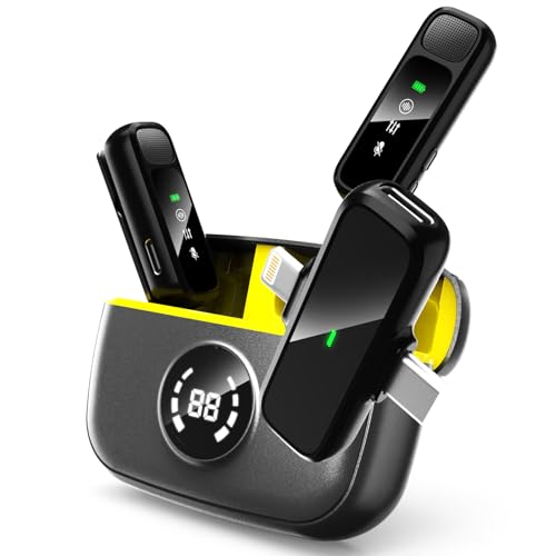 BKIY Wireless Lavalier Microphone for iPhone/Android - Dual Mini Noise Canceling Mic with Charging Case(30H), USB-C/Lightning Clip-on Microphone for Video Recording Streaming Podcast Vlogging(Black)