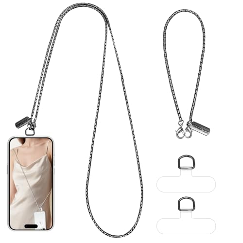 Dadanism Universal Phone Lanyard Set, Cellphone Chain Crossbody*1 Phone Wrist Strap*1 with 2 Tether Tabs for iPhone 16 and Most Smartphones, iPhone Charm for Women Girls Party Traveling Shopping,Black