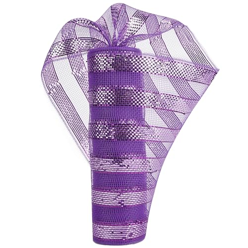 HUIHUANG Purple Deco Mesh 10 inch Wide Purple and Lavender Stripe Poly Mesh Christmas Mesh Ribbon for Trees, Halloween Decor, Wreath Supplies, Swags, Garland, Large Bows-10 Yards