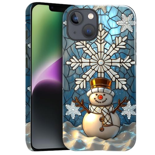 DJSOK Case for iPhone 13,Shockproof Hybrid 2-Layer Hard Shell Glossy Phone Case-Stained Glass Christmas Snowman 02