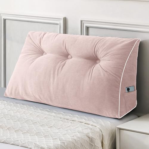 Sasttie Headboard Pillow Twin/Twin XL, Wedge Pillow Headboard for Dorm, Triangular Daybed Backrest Cushion for Sitting or Reading in Bed, with Removable Washable Cover, Light Pink