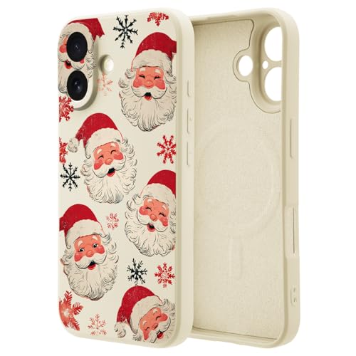 OFQKOAKS for iPhone 17 Pro Case Compatible with MagSafe,Cute Festive Christmas Santa Claus Snowflakes Phone Case,Soft White Liquid Silicone Slim Fit Protective Cover for Women Girls