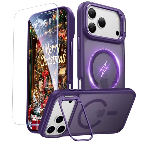 Peerock for iPhone 17 Pro Max Case with Stash Lens Stand and 9H Screen Protector, Compatible with MagSafe, Military-Grade Drop Protection Phone Case for iPhone 17 Pro Max, 360° Full Protection, Purple