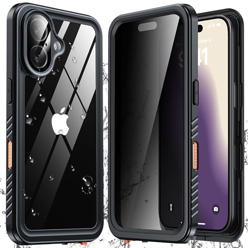 ANTSHARE for iPhone 16 Case Waterproof, [Anti Spy] Privacy Screen Protector for iPhone 16, [IP68 Under Water] Heavy Duty Full-Body Shockproof Phone Case, Black