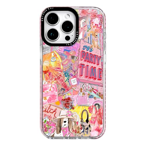 ChiCaseVer for iPhone 15 Case, Pink Party Time Collage Pattern, Fun Soft Slim TPU Compatible with MagSafe, Military-Grade Drop Protection & Camera Protection for Women Girls