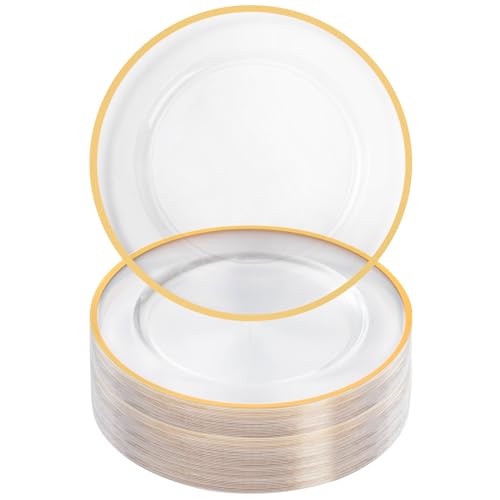 Goodluck 12 Inch Charger Plates, 50 Pack Clear Charger Plates with Gold Trim, Plastic Charger Plate Bulk for Dinner, Wedding, Party, Event Decoration, Clear&Gold