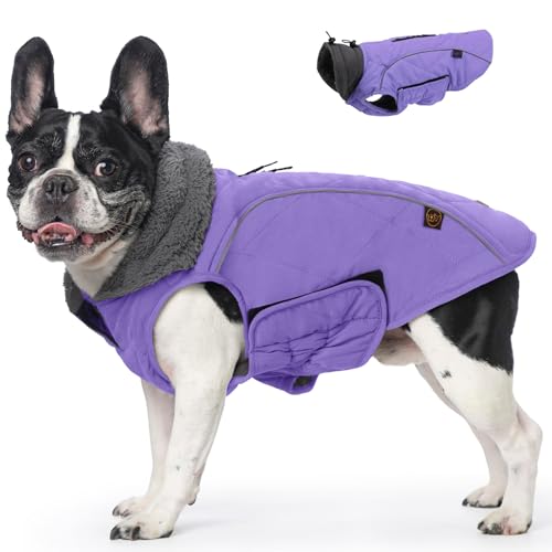 EMUST Winter Dog Coats - Fleece Dog Jacket for Cold Weather, Windproof & Warm, British Style, Purple, XS